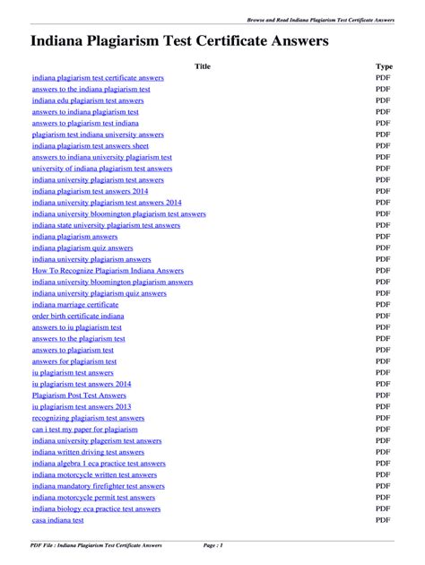 Read Online Indiana plagiarism test answer key Reader