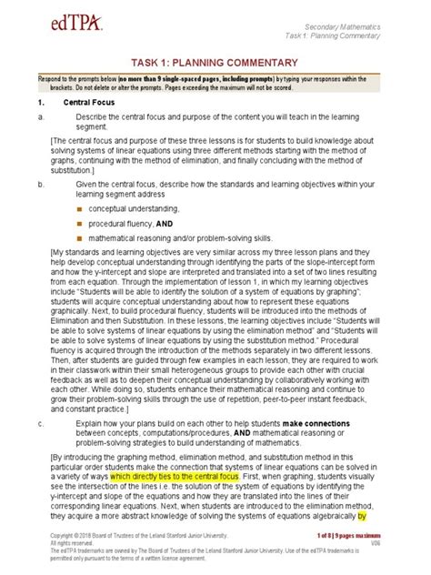 Read Online Example Secondary Math Planing Commentary Edtpa Doc
